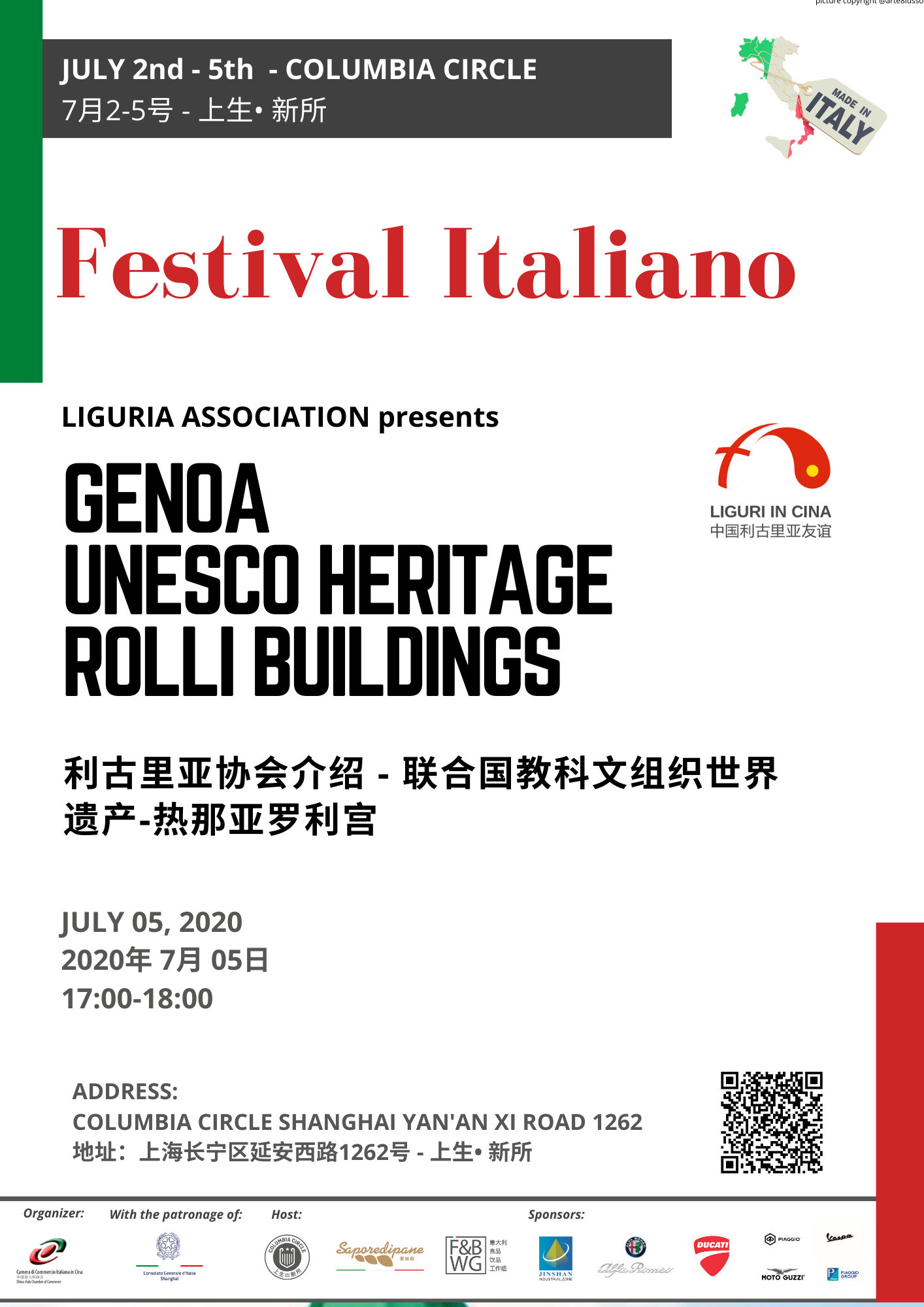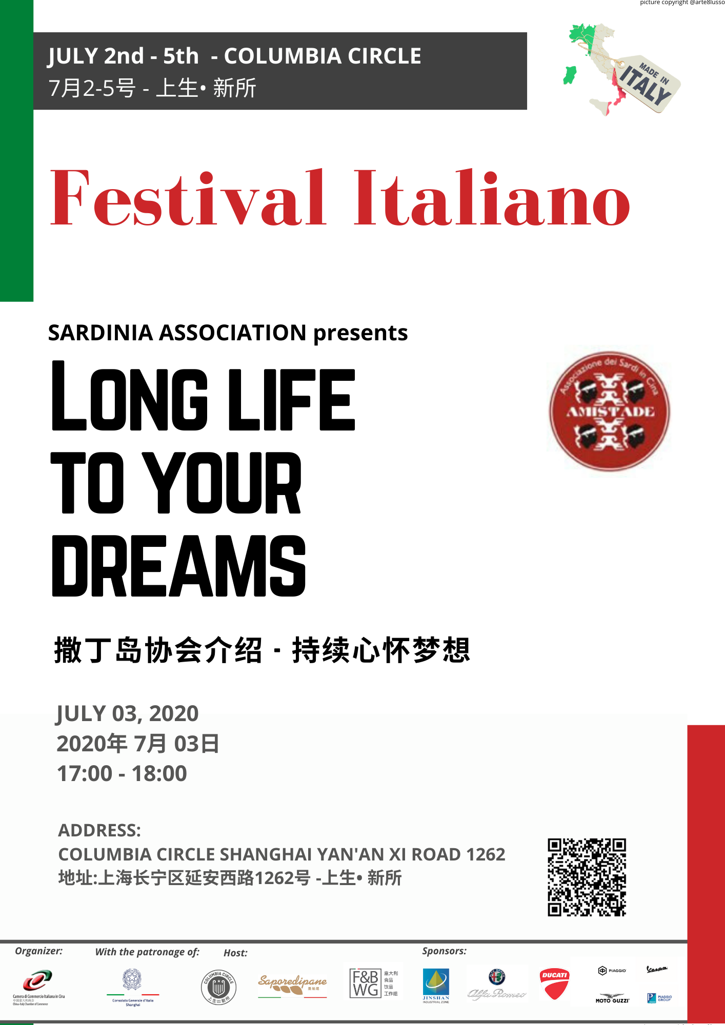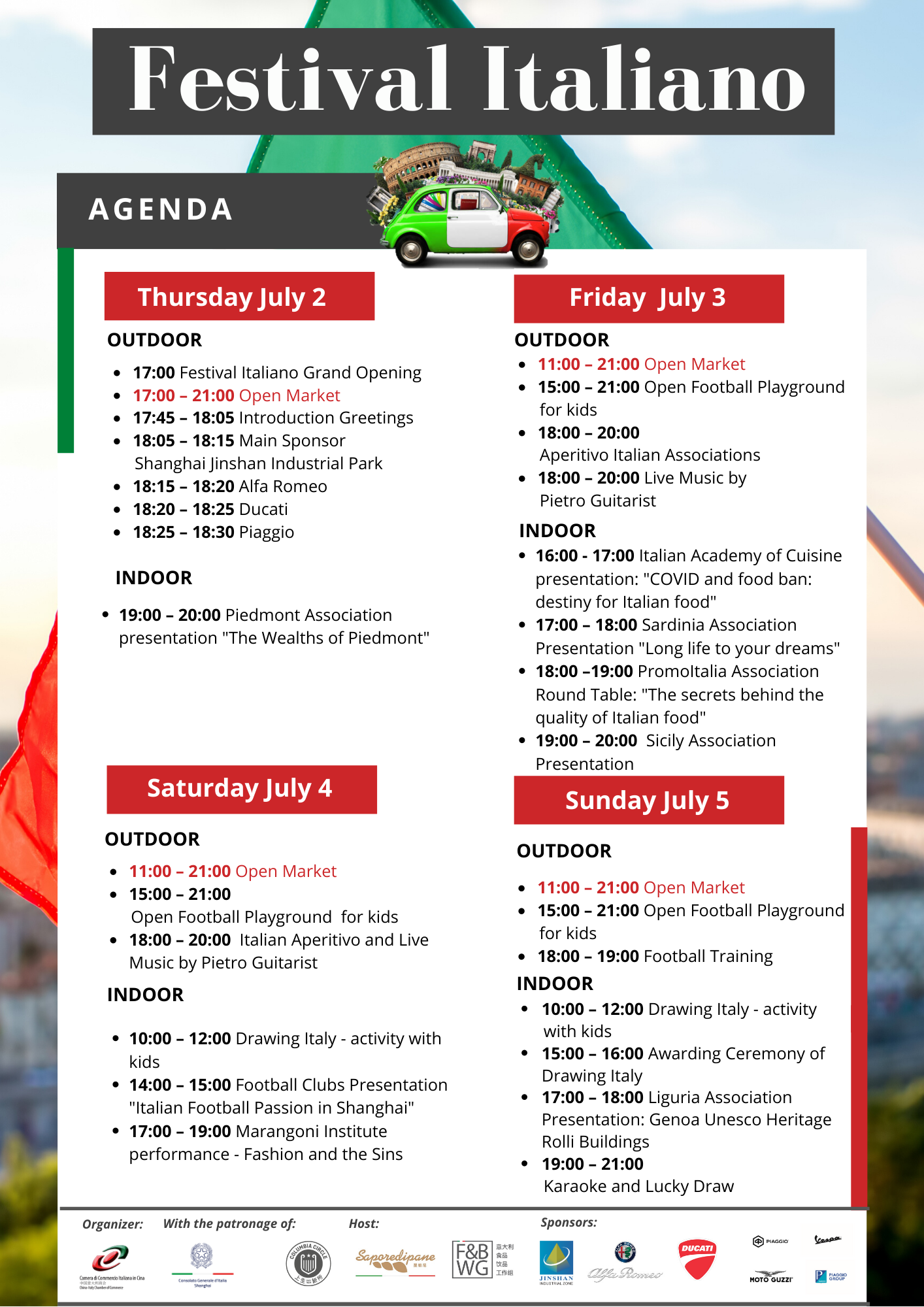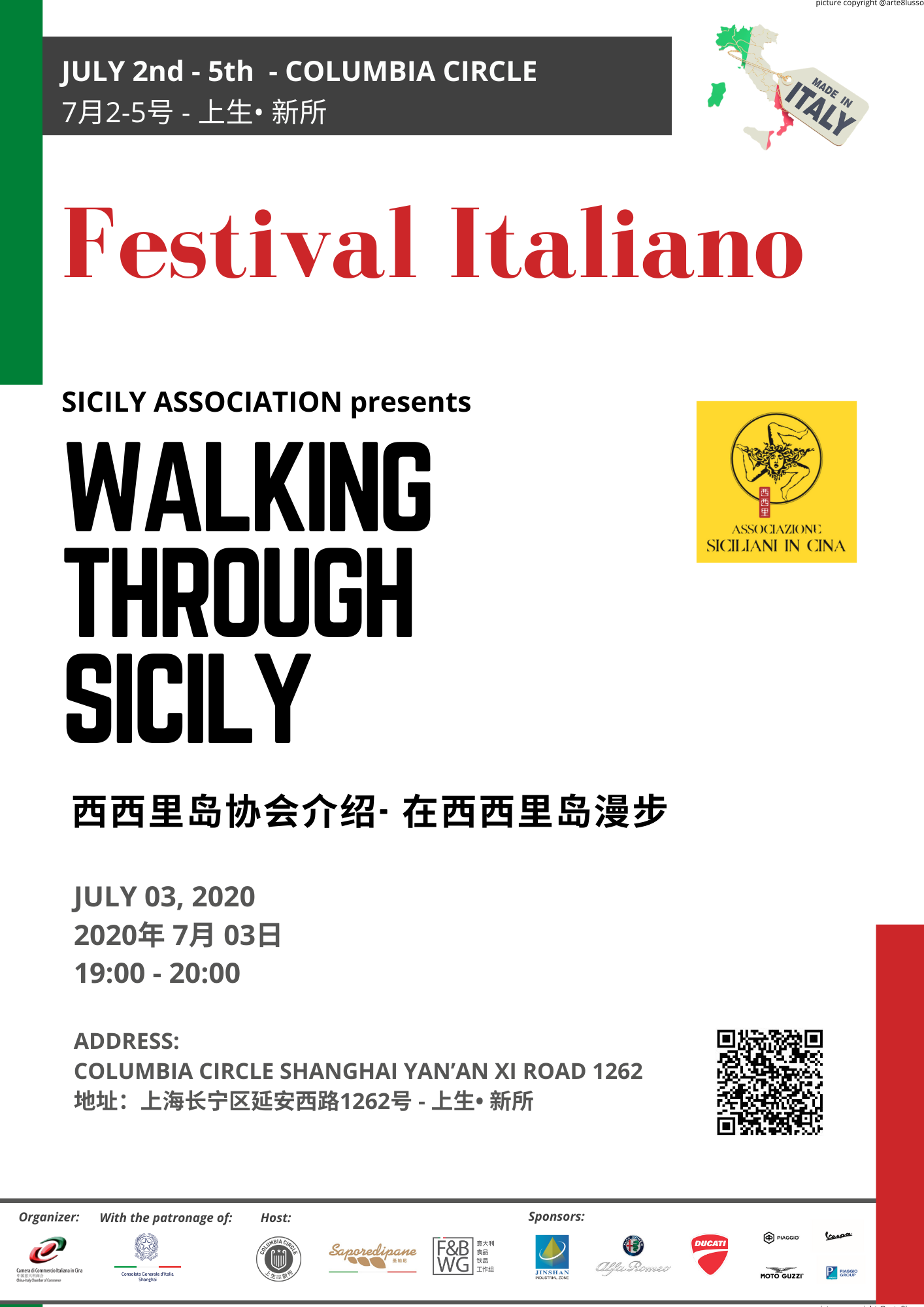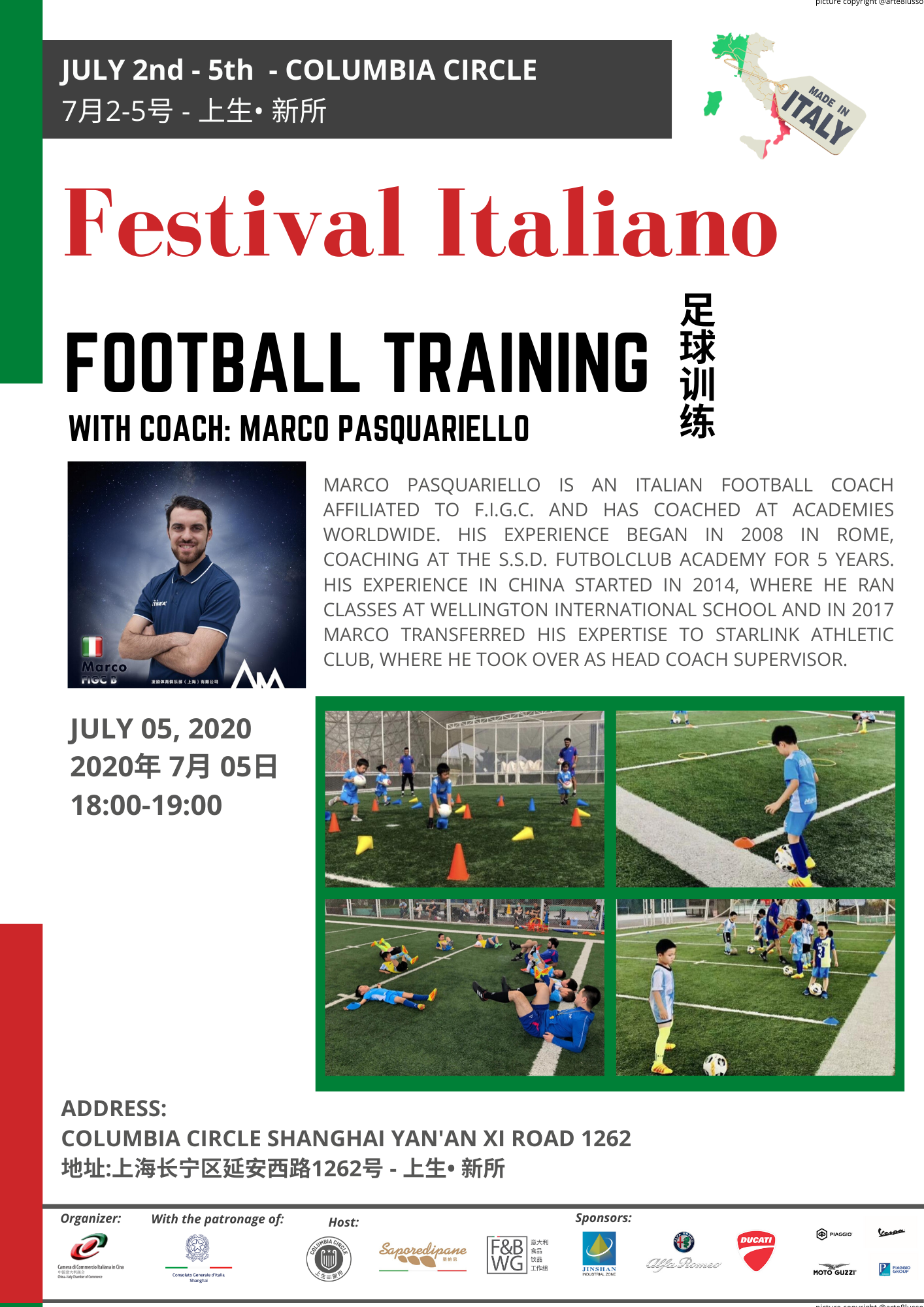 From an idea of the CICC Food and Beverage Working Group (F&BWG), the China-Italy Chamber of Commerce (CICC), with the patronage of the Consulate General of Italy in Shanghai, is glad to present the event “Festival Italiano”, that will be held from July 2nd till July 5th, at Columbia Circle in Shanghai.