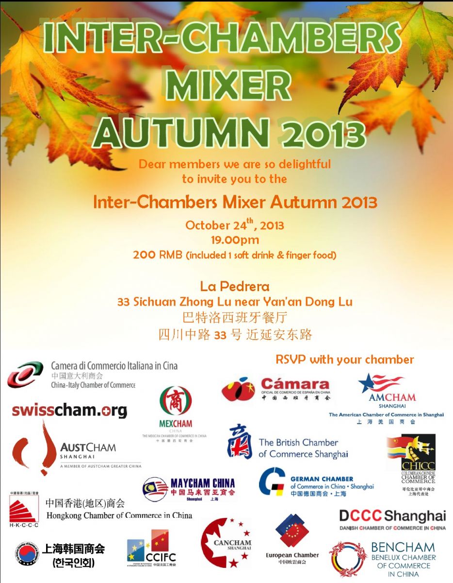 China-Italy Chamber of Commerce has the pleasure to invite you to attend the Autumn Interchamber Mixer: