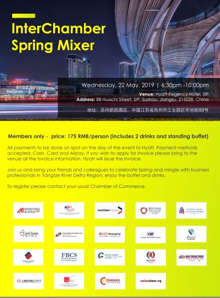 The China-Italy Chamber of Commerce is glad to invite you to the following event “InterChamber Spring Mixer” on the 22nd May 2019.