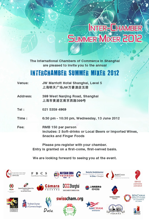 China-Italy Chamber of Commerce, together with participating foreign Chambers of Commerce in Shanghai, has the pleasure to invite all of you to attend the InterChamber Summer Mixer 2012 to be held at JW Marriott Hotel Shanghai on 13th June, 2012.