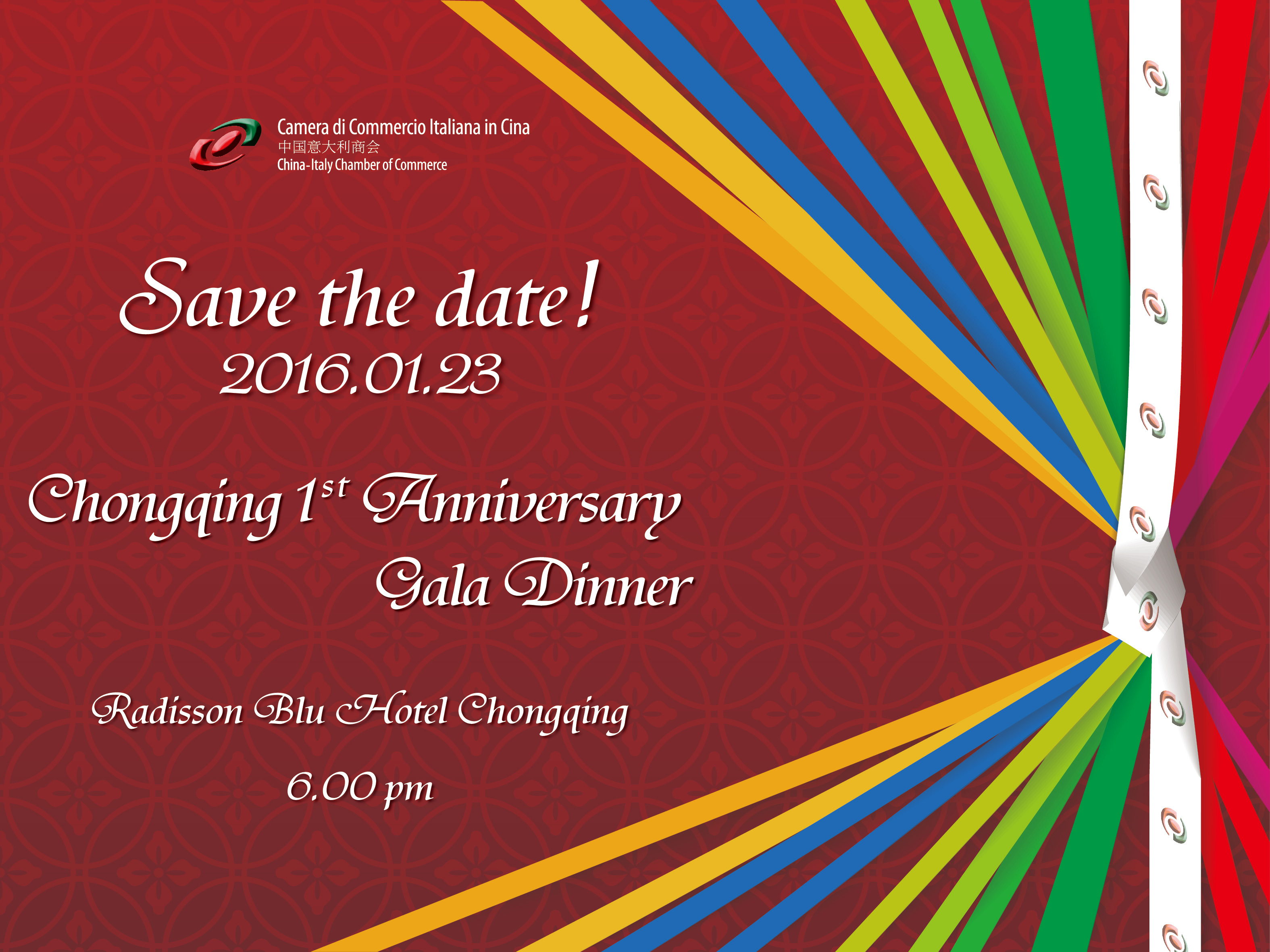 The China-Italy Chamber of Commerce (CICC) is glad to invite you to celebrate its 1st Anniversary Gala Dinner in Chongqing to be held on Saturday, January 23rd 2016 at Radisson Blu.