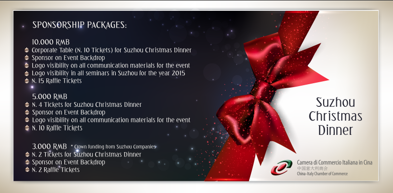 For reservation or sponsorship packages, please contact us via email at infosuzhou@cameraitacina.com.