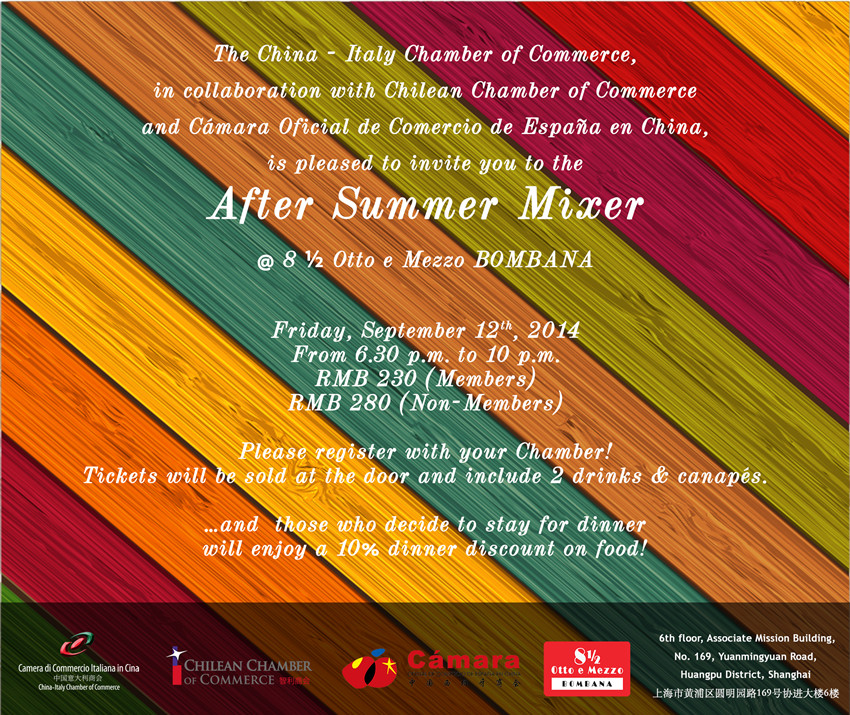 Getting prepared for the early revival of the business community in Beijing after the summer break, China - Italy Chamber of Commerce (CICC), along with other 15 leading Chambers are delighted to invite you to the All - Chamber Welcome Back Networking at Pine Garden in Summit Wing Hotel.
