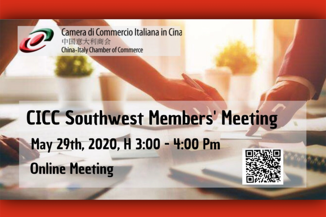 The China-Italy Chamber of Commerce is glad to invite you to the CICC Online Members' Meeting: Southwest of China that will be held on Friday 29th May 2020 at 3.00 PM.