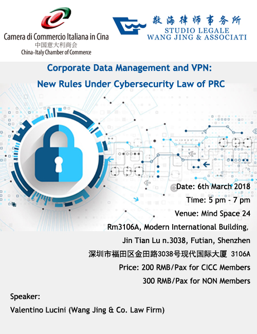 "Corporate Data Management and VPN: New Rules Under Cybersecurity Law of PRC", a seminar that will take place on March 6th in Shenzhen.