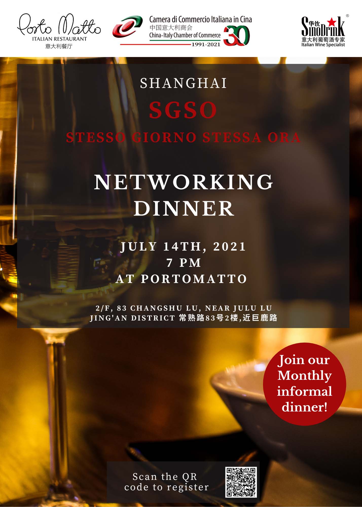 The networking event will take place on Wednesday, July 14th, at Portomatto,  (2/F, 83 Changshu Lu, near Julu Lu Jing'an District / 常熟路83号2楼,近巨鹿路), starting from 7:30 pm (the registration begins at 7:00 pm).
