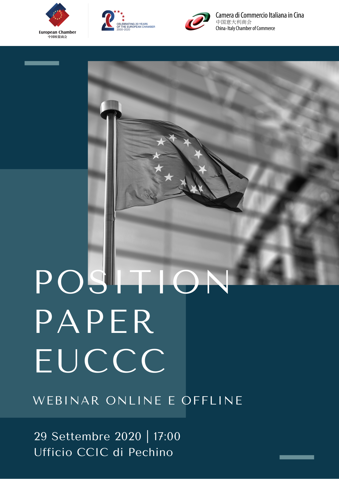 The China-Italy Chamber of Commerce is glad to inform you that  Position Paper EUCCC, the online and offline webinar will be held in CICC Beijing office on September 29th 4 PM.