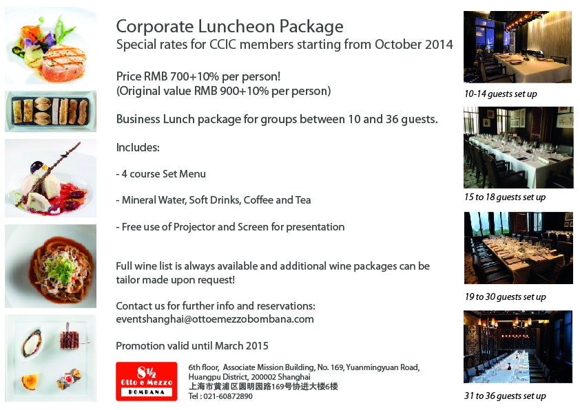 We are glad to inform you that 8 1/2 Otto E Mezzo BOMBANA will reserve a special Corporate Luncheon Package for our Members.