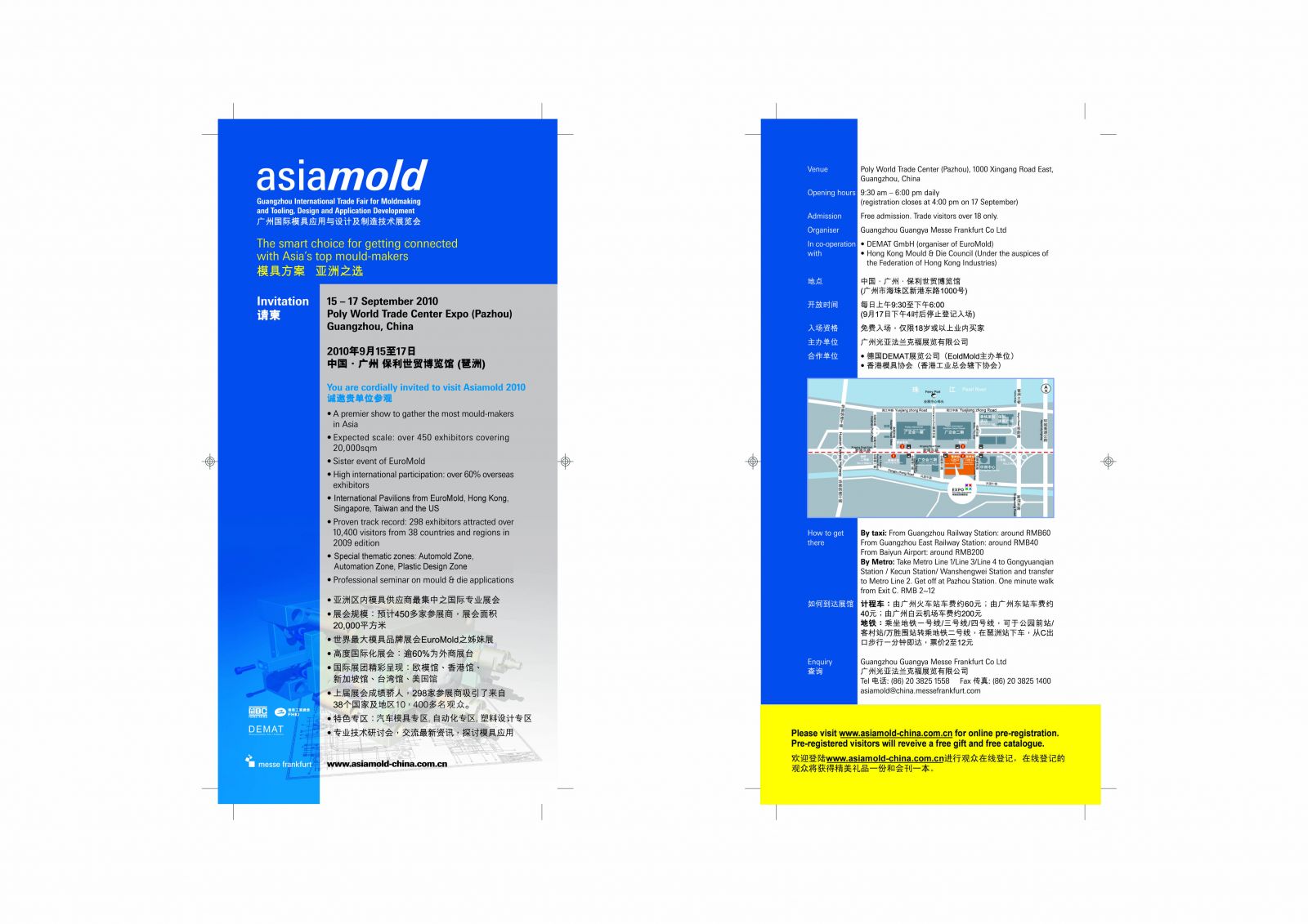 Please visit www.asiamold-china.com.cn for online pre-registration.