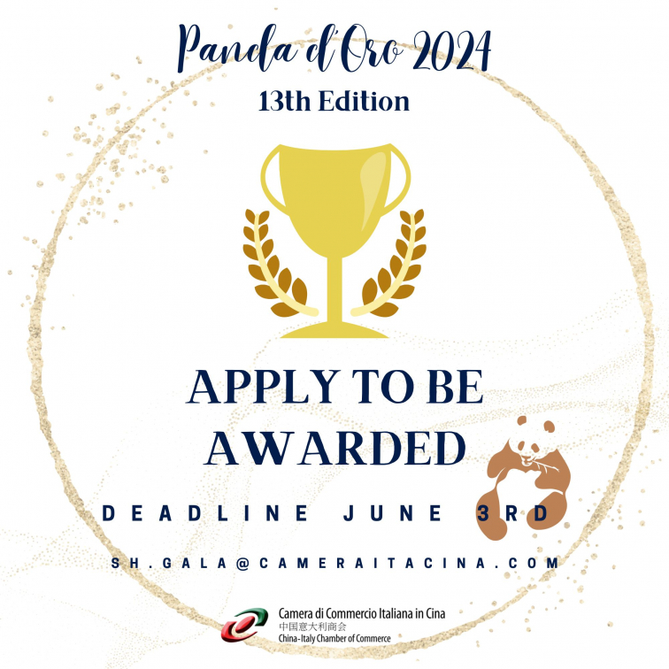 The China-Italy Chamber of Commerce is pleased to invite you to participate in the 13th edition of the Panda d’Oro Gala Awards as contestants to win the Panda d’Oro Prizes. The Awards Ceremony will be held on Saturday, June 15th, 2024 in Shanghai.