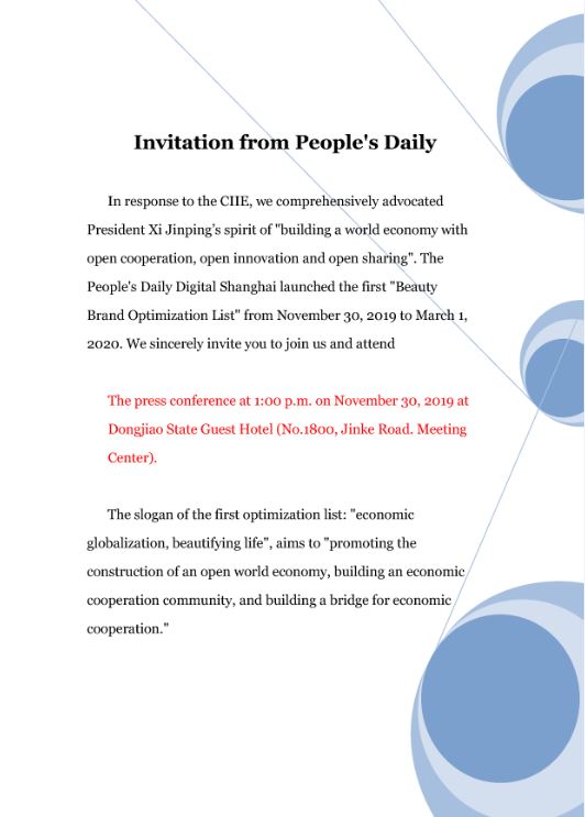 People’s Daily: "Beauty Brand Optimization List" - November 30, 2019 - Shanghai