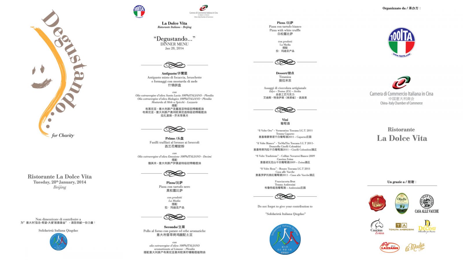 The China-Italy Chamber of Commerce and 100ITA would like to thank participants to the event "Degustando品尝",  which took place @ Italian Restaurant "La Dolce Vita" on Tuesday, Jan. 28th .