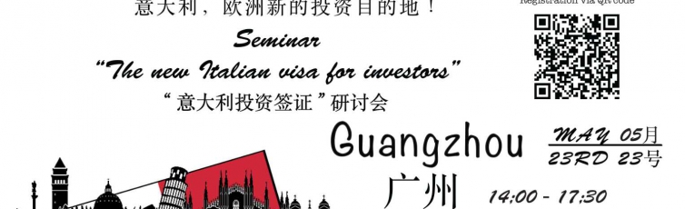 SAVE THE DATE! May 23rd, Guangzhou - “Invest in Italy: new Italian visa for investors” Seminar