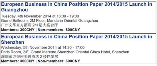 European Business in China Position Paper 2014/2015 Launch, Guangzhou & Shenzhen