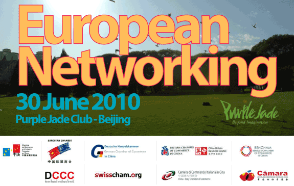 The China-Italy Chamber of Commerce, the SwissCham Beijing, the Benelux Chamber of Commerce in China, the British Chamber of Commerce in China, the Danish Chamber of Commerce in China, the European Union Chamber of Commerce in China, the French Chamber of Commerce in China, the German Chamber of Commerce in China and the Spanish Chamber of Commerce in China invite you to the “European Networking” at Purple Jade Country Club.