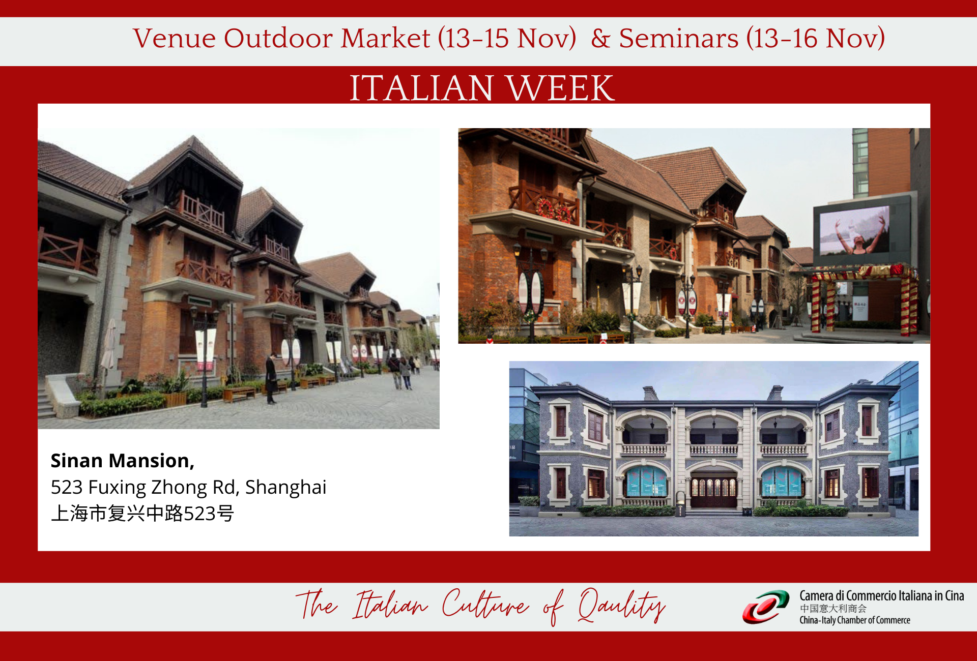 The Italian Week will debut in Shanghai with the Outdoor Market at Sinan Mansions ( 523 Fuxing Zhong Rd, Shanghai 上海市复兴中路523号) dedicated to the excellence of Made in Italy.