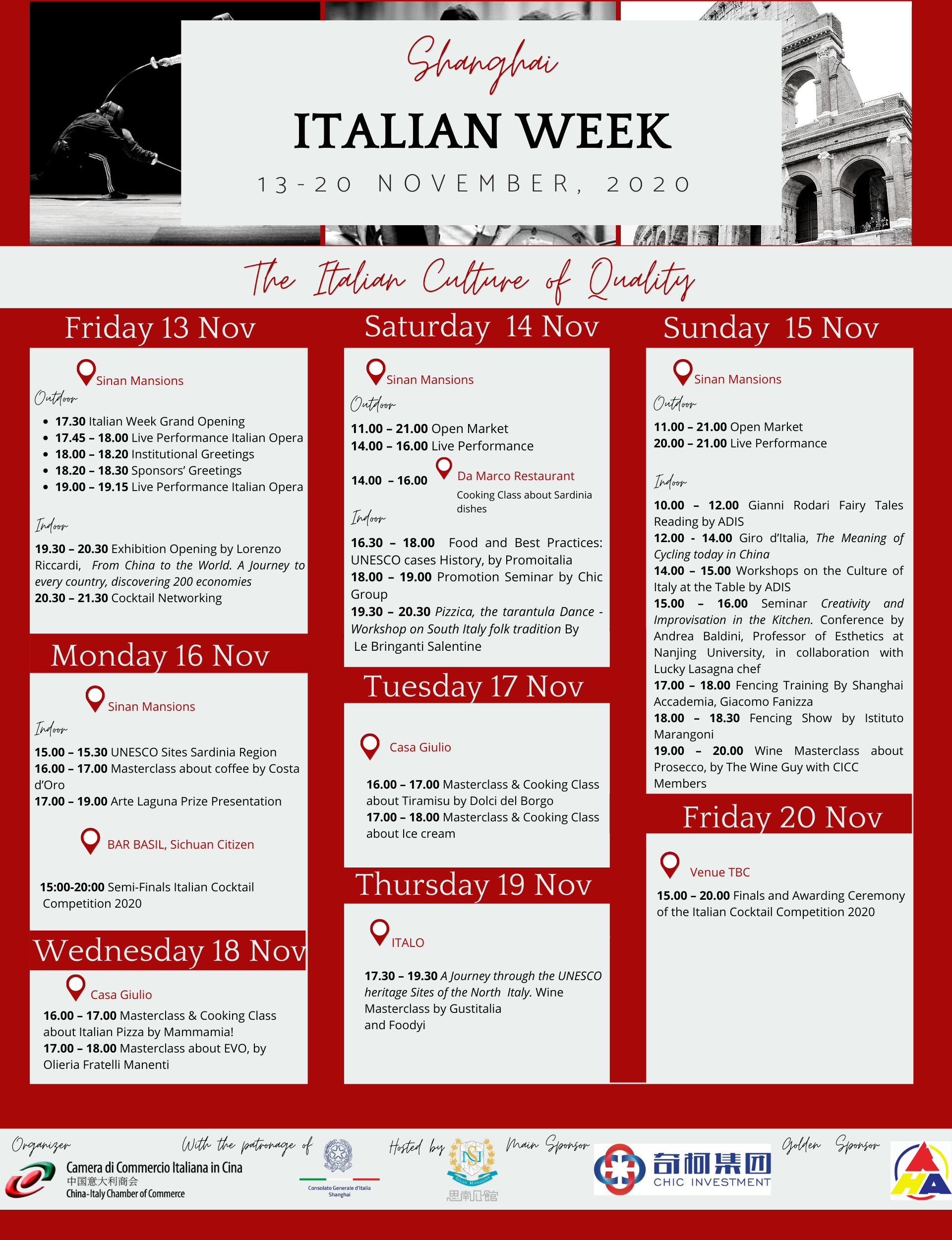 Italian Week: The Culture of Quality, 13-20 November, Shanghai, Program of Activities
