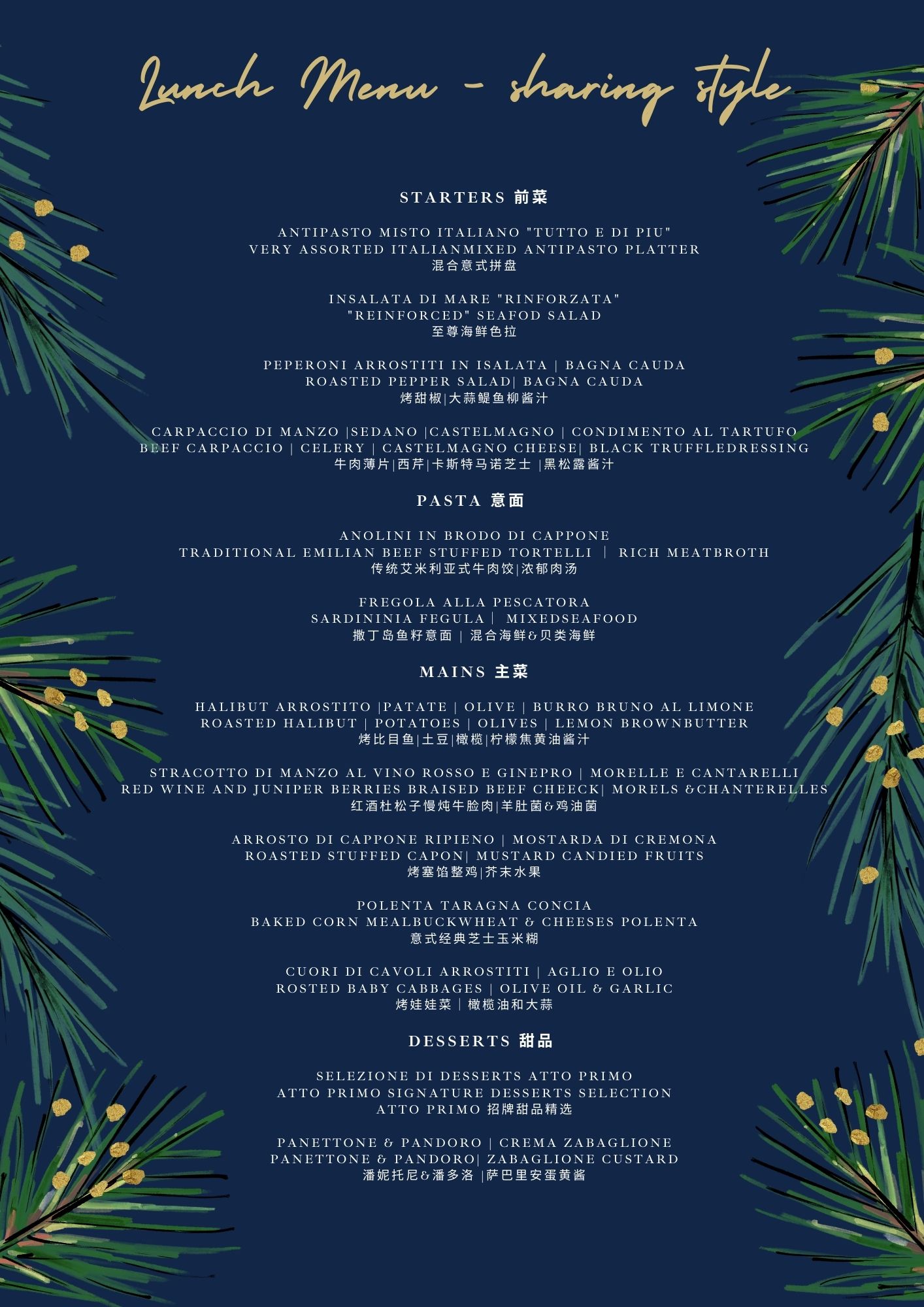 You will be treated to a special Christmas Lunch by ATTO PRIMO, an iconic Italian Restaurant located in front of Huangpu River and Lujiazui, in a historic building, circa 1925, on the Bund. The Piemontese owner chef will provide us a Lunch in an Italian way that will bring you the memories of the Christmas Lunch at home.