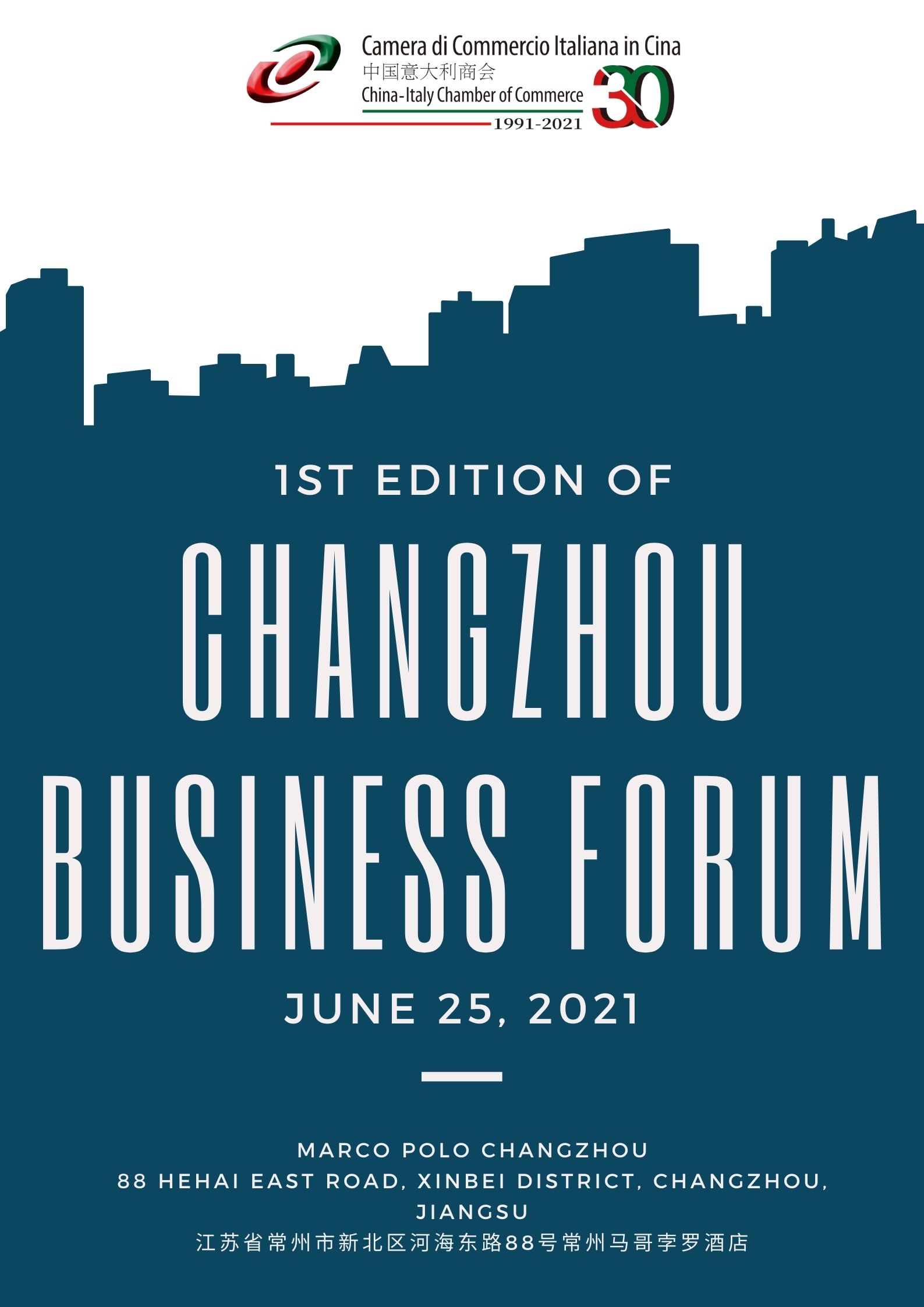 The China-Italy Chamber of Commerce (CICC) is pleased to announce that the First Edition of Changzhou Business Forum will be held on 25 June 2021. The aim of the Business Forum is to gather all the Italian and Chinese companies in and around Changzhou to enhance cooperation and networking.