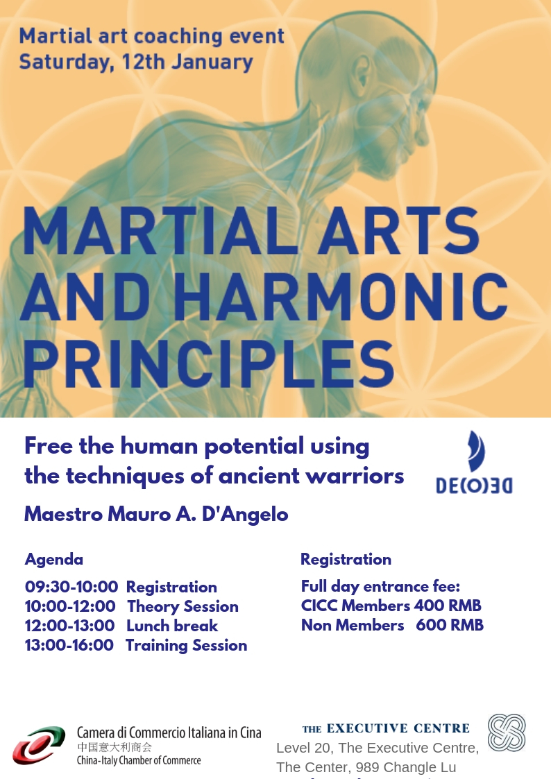 The China-Italy Chamber of Commerce is glad to invite you to the Martial Arts and Harmonic Principles Coaching Event, that will take place on 12th of January at The Center in Shanghai.