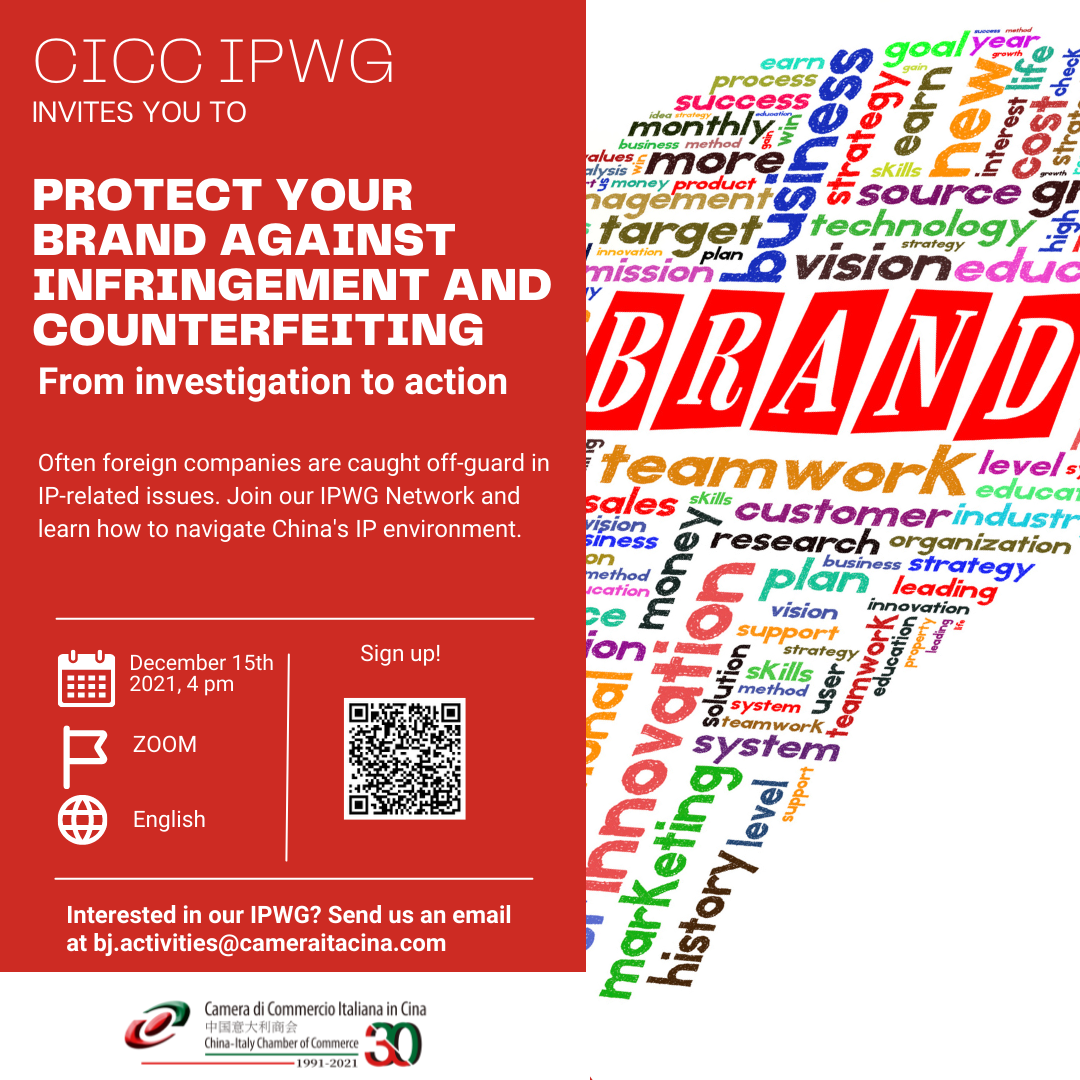 Our Intellectual Property Working Group (IPWG) is glad to invite you to the webinar “Protect Your Brand Against Infringement and Counterfeiting - From Investigation to Action” on December 15th, 2021, starting from 4:00 pm (China Standard Time) / 9:00 am CET.