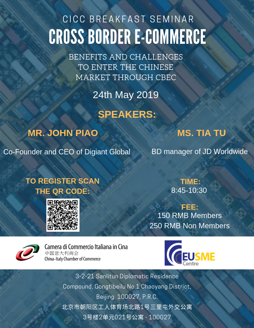 The China-Italy Chamber of Commerce is glad to invite you to the Breakfast Seminar on May 24th, focused on: