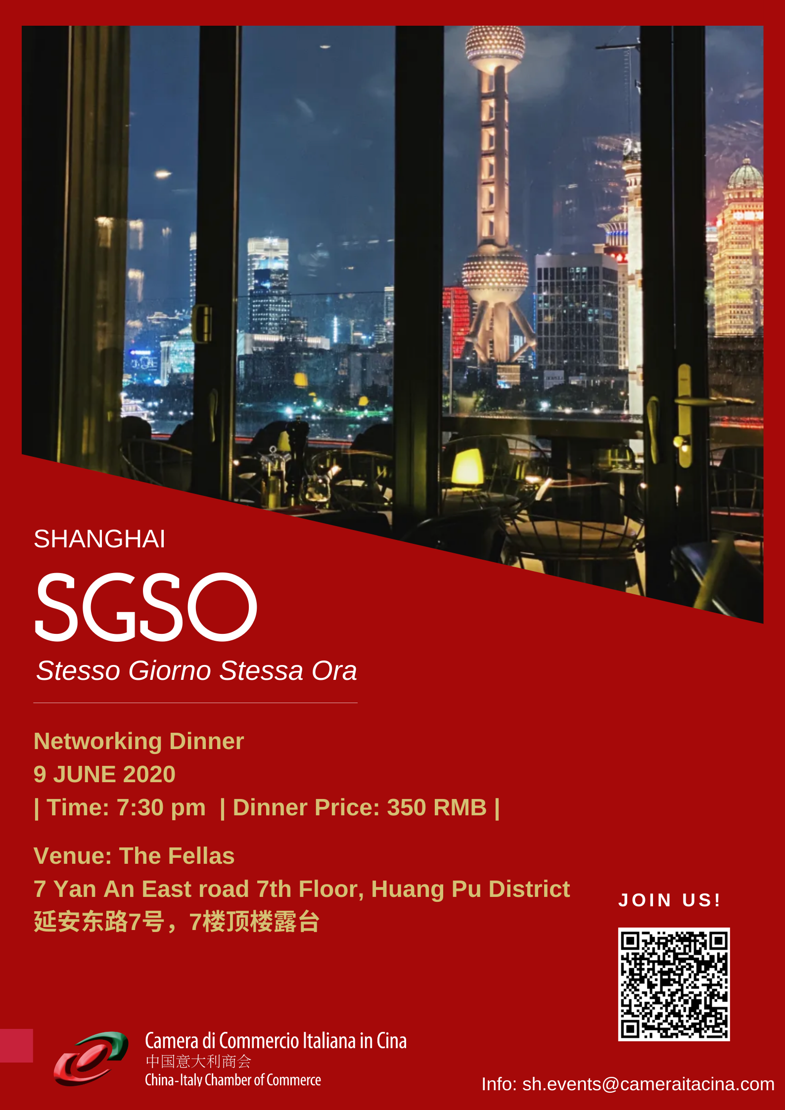 The China-Italy Chamber of Commerce (CICC) is glad to inform you that our SGSO Monthly Informal Meeting will take place on Tuesday, 9th of June at The Fellas starting from 7:30 pm.