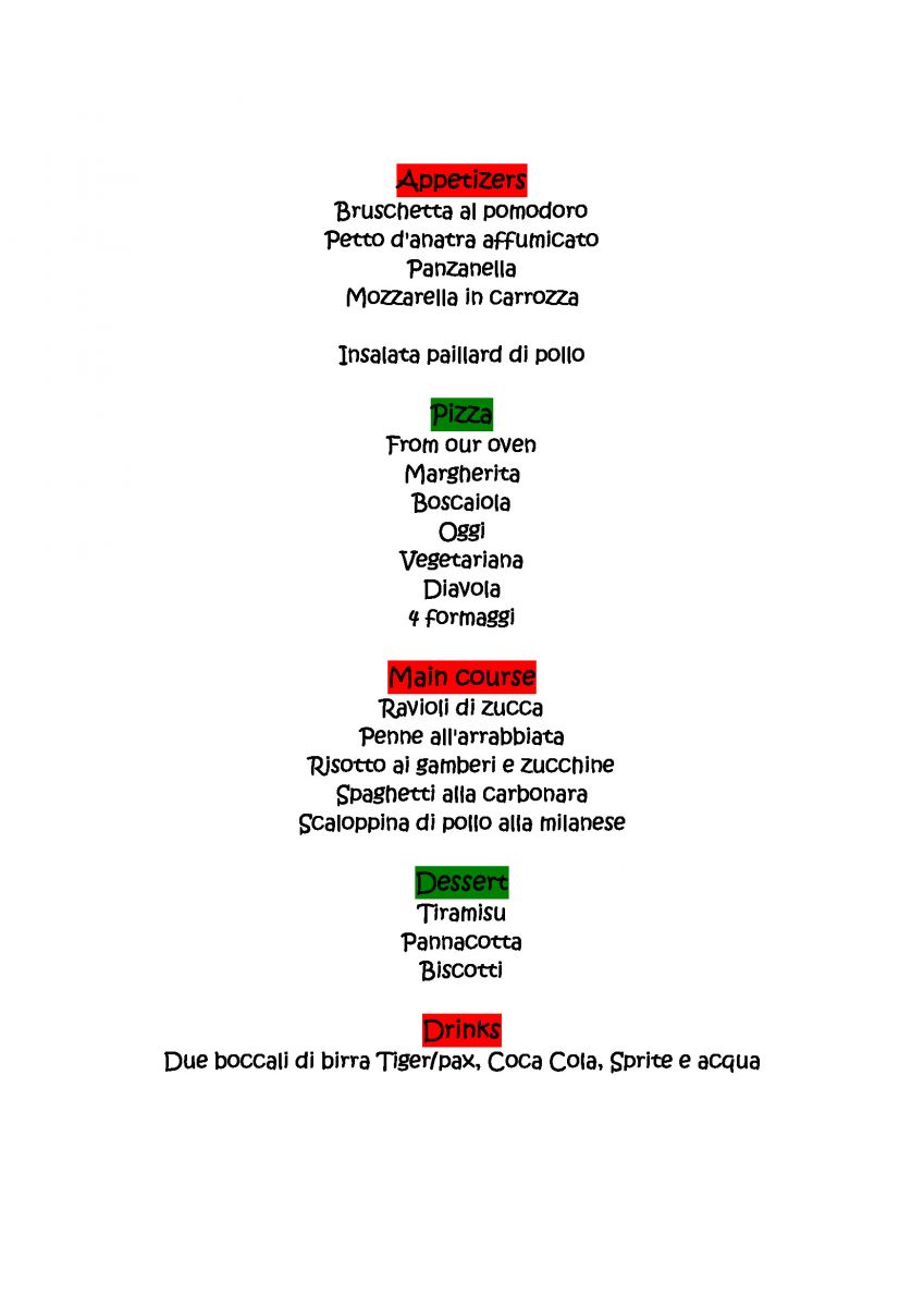 Menu: please see the attachment