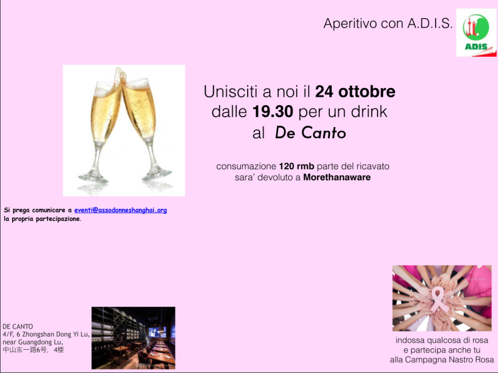 we are glad to inform you that, on October 24th at Decanto, A.D.I.S. will host an happy hour event in order to help the association Morethanaware.