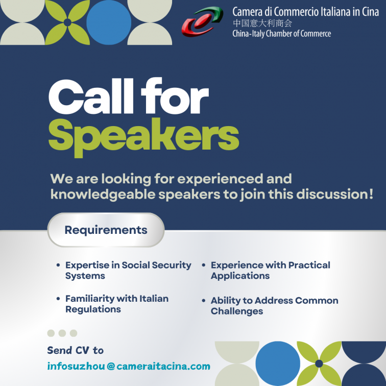 The China-Italy Chamber of Commerce (CICC) is excited to announce an upcoming discussion on Social Security Contributions for Italians Working in China, scheduled for October 17th, 2024, in Suzhou.