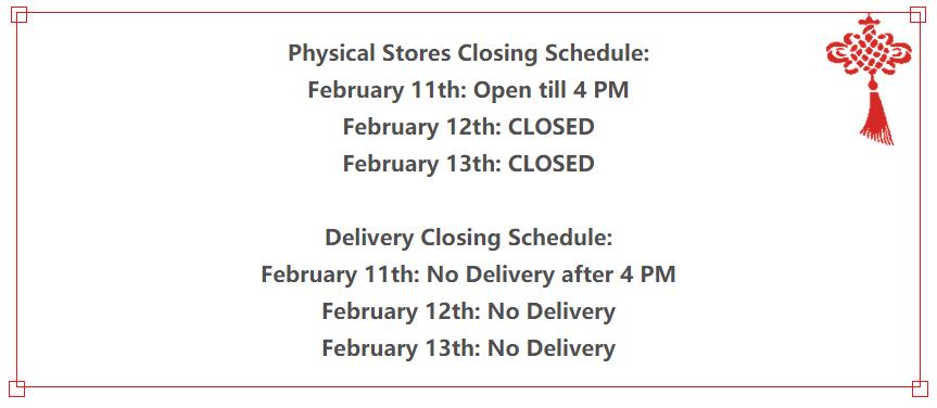 Happy Chinese New Year! We wish you all a lovely holiday and are grateful to serve you.