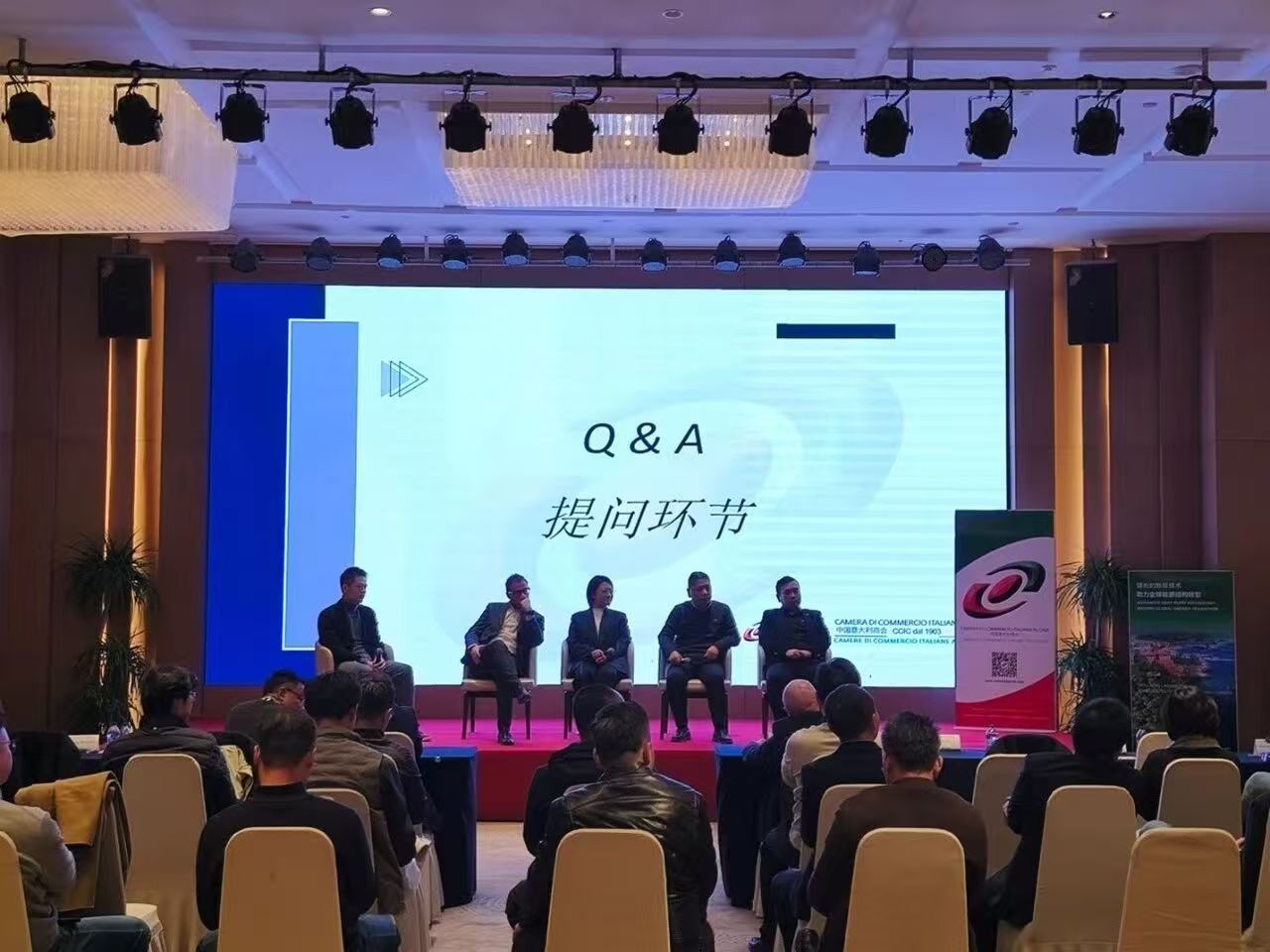 After the tour, the seminar part of the event began with opening remarks from Emilio Cassanelli, CICC Board Member, and Ke Da, Vice Coordinator of MEWG and General Manager of Thermowatt. Both speakers emphasized the importance of Italian Chinese collaboration in advancing energy transition and sustainability.