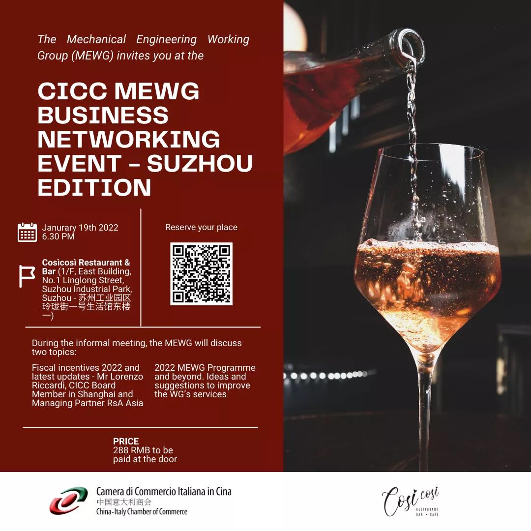 The CICC also kindly invites you to take part in the next MEWG Business Networking Event scheduled on January 19th in Suzhou.