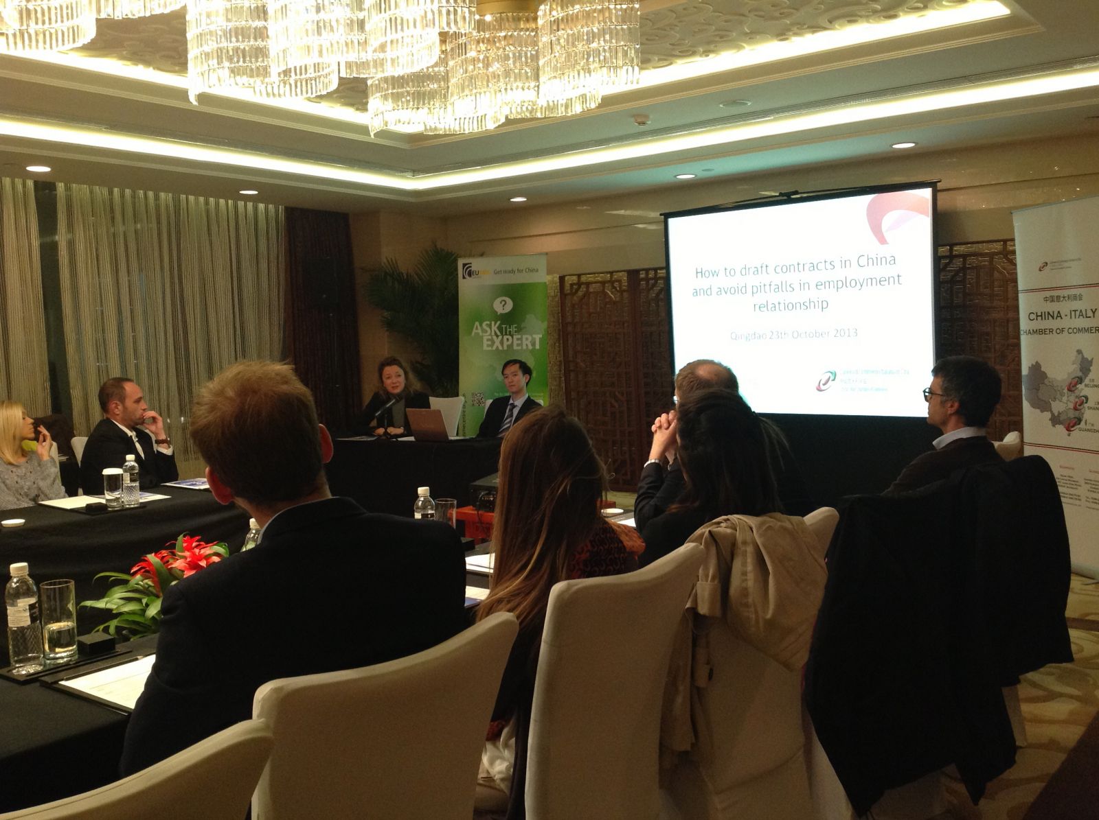 On October 23th, at Intercontinental Qingdao, the China Italy Chamber of Commerce and the EU SME Centre jointly organized the seminar “How to draft contracts in China and avoid pitfalls in employment relationship".