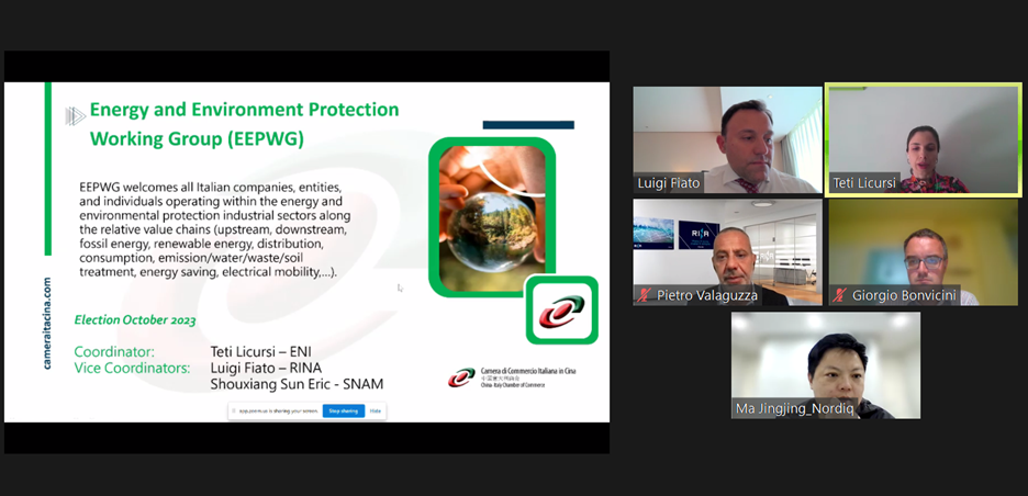 The webinar was hosted by Luigi Fiato, Vice-coordinator of the CICC Energy and Environment Working Group (EEPWG), that introduced the main topics to be discussed and moderated the event. Thereafter Teti Maria Licursi, Coordinator of the Energy and Environment Working Group (EEPWG), presented the EEPWG working group, with its companies’ composition, activities, and objectives.