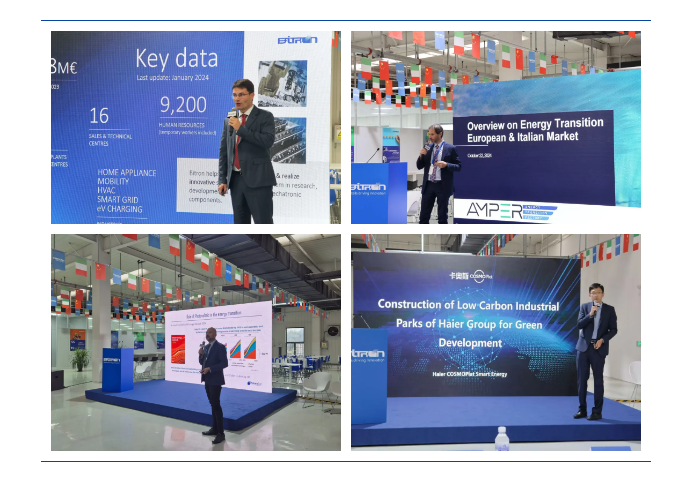 The event continued with contributions from several industry leaders. Davide Praino provided insights into the company’s significant commitment to energy transition through innovative products and systems, Antonio Lobosco, CEO of Ampere Transition, provided a comprehensive overview of the Energy Transition status in Europe and Italy and the role of the Bitron co-funded startup in supporting organizations toward decarbonization. Gianluca Coletti, CTO of FuturaSun, addressed the challenges of technological innovation in photovoltaics whereas Zijiang Yang, Director of Product and Solutions at Haier COSMOPlat Smart Energy, spoke about Haier Group’s initiatives in developing low-carbon industrial parks for sustainable growth.