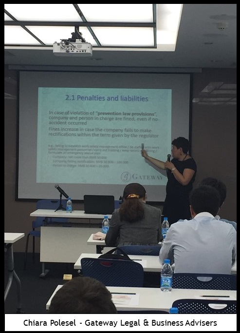 Thereafter, Consulting Companies gave their presentations. Chiara Polesel, from Gateway Legal & Business Advisers, focused on the New Safety Law, legal liabilities and practical solutions and recommendations for companies and employees. Then, two consulting companies based in Suzhou offered their presentations which were focused on safety production standardization certificate, benefits, requirements and support for companies.